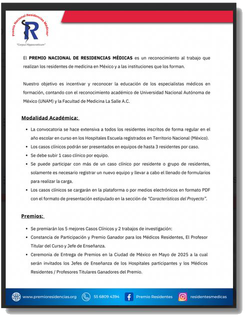 Pronto estaremos anunciando la convocatoria para la 8° edición del Premio Nacional de Residencias Médicas.